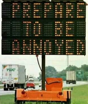 "But why wasn't there a road sign earlier to let us know that this sign advising us of an upcoming sign was coming up? What kind of place is this?"